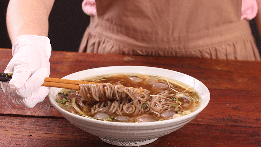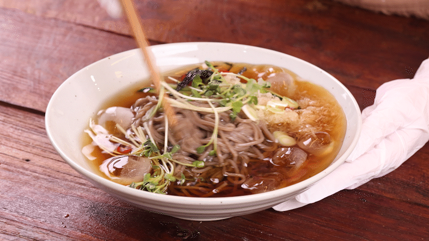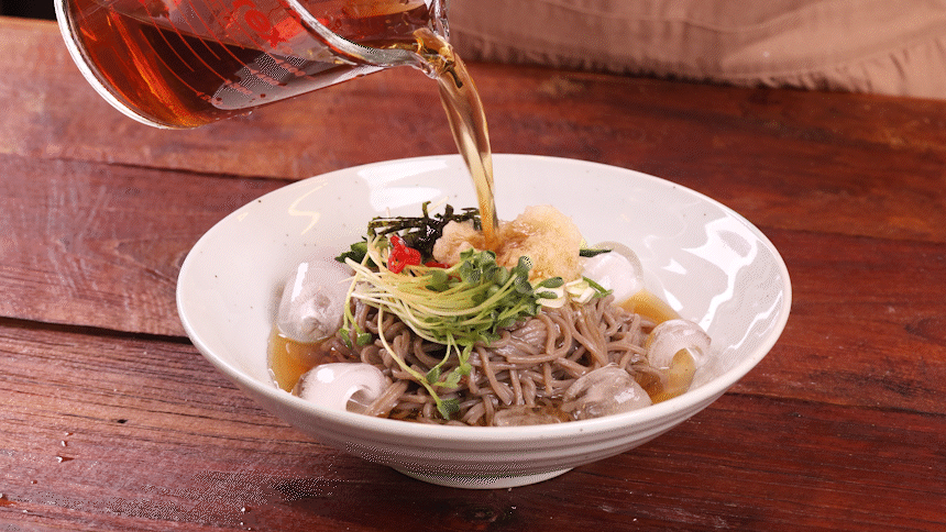 구수한 메밀의 풍미를 살린 면발과 진한 가쓰오부시 소스
