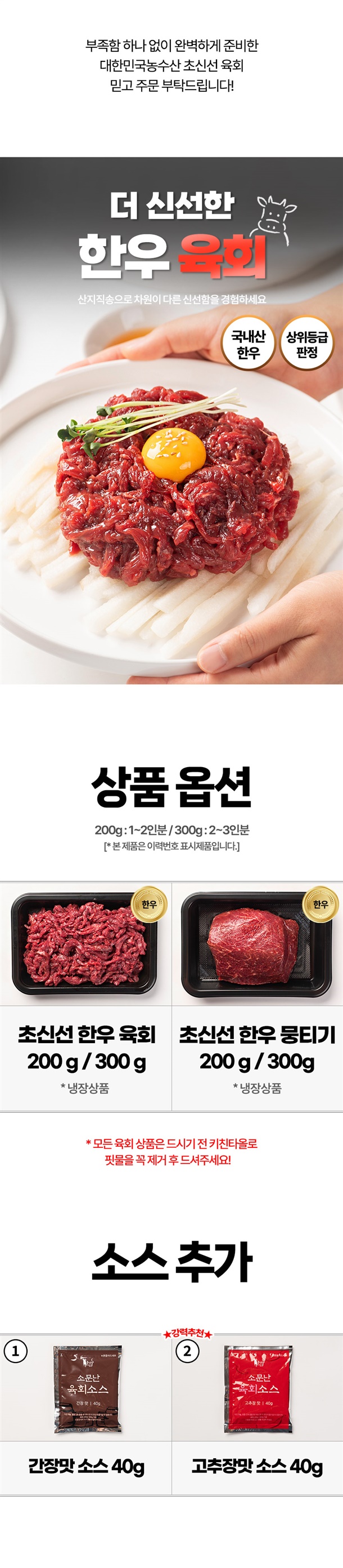 | 1. 포장단위별 용량(중량), 수량, 크기 | 한우 육회 |