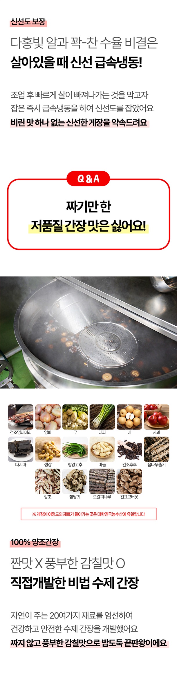 | 1-4. 포장단위별 용량(중량), 수량 | 절단 간장게장 1kg (2마리 4조각), 양념게장 500g (5~8조각) |