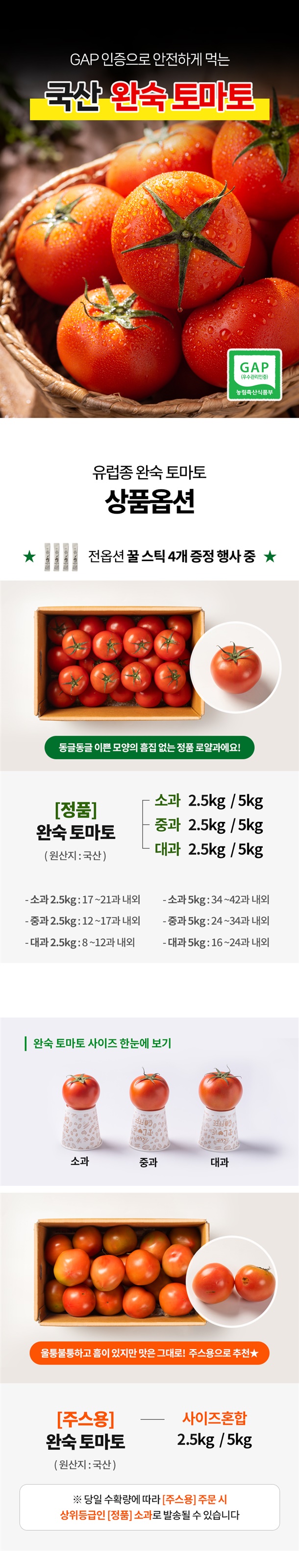 | 6. 상품구성 | 완숙토마토(정품/쥬스용) 2.5kg / 5kg |