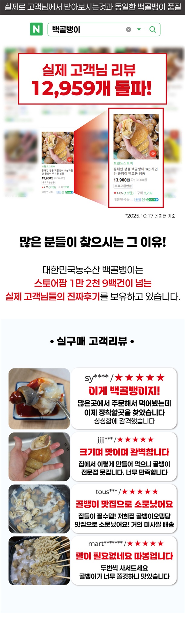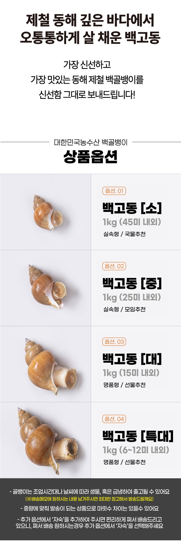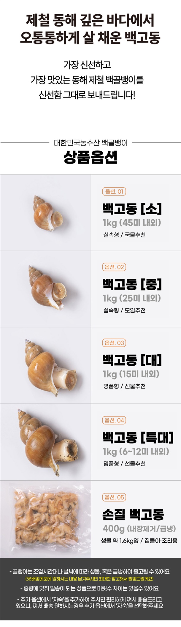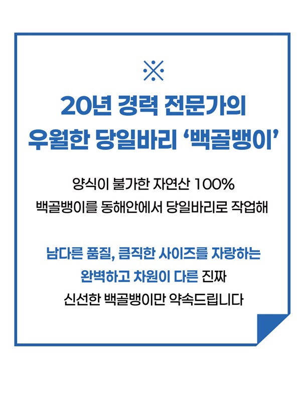 | 6. 상품구성 | 급냉 또는 생물 1kg 백골뱅이 |